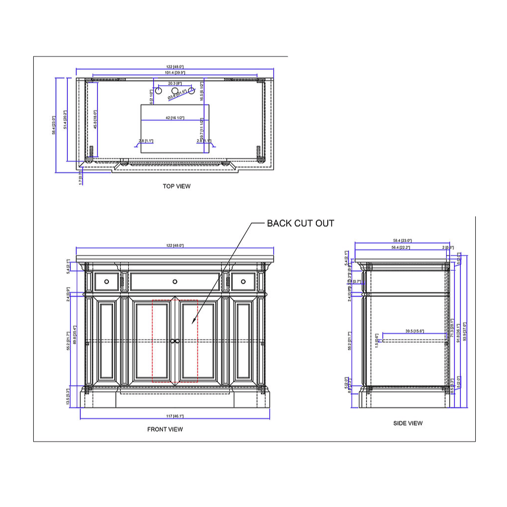 - Size: 48"W x 23"D x 36"H