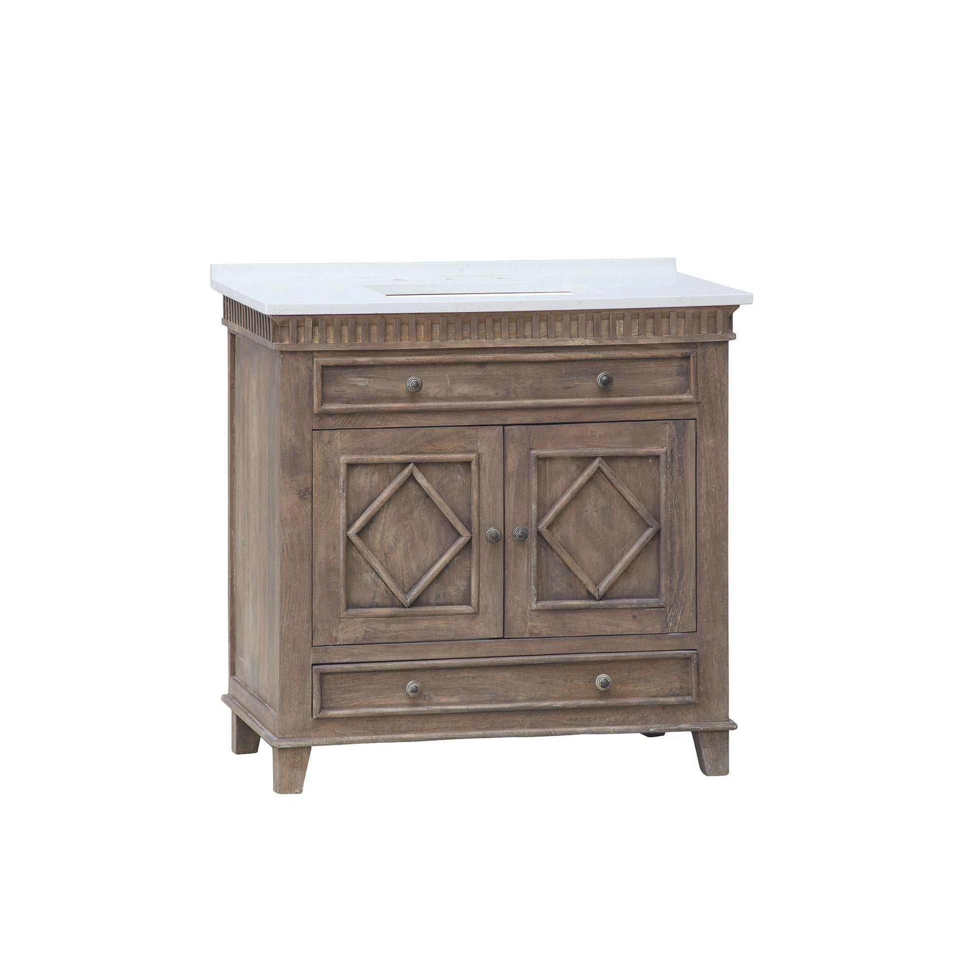 LK3836WT Rustic Wood 36" Vanity w/ white Quartz Top