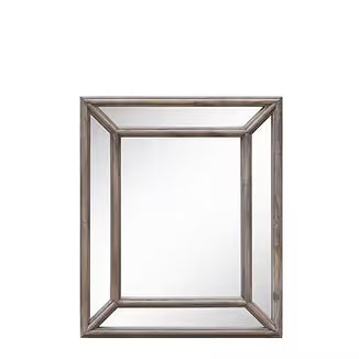The frame is constructed from solid mango wood accented with raised molding and a natural, clear finish. The Belle Isle mirror measures 32 inches wide and 38 inches tall.