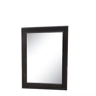The frame is constructed from fir with a distressed finish with brown undertones and a black antiqued crackle. The Asheville mirror measures 32 inches wide and 38 inches tall.